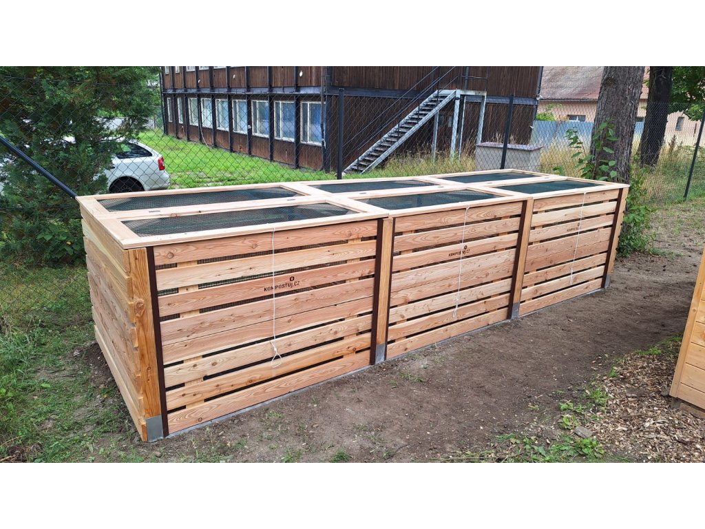 Masivní dřevěný kompostér typ 3000 je složen ze tří komor, každá z komor má objem 1 m3.