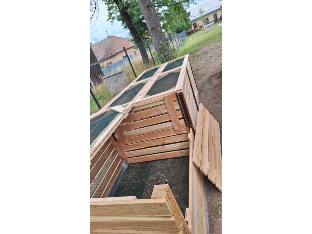Tříkomorový kompostér z masivního modřínového dřeva je vysoce odolný vůči povětrnostním podmínkám a agresivnímu prostředí v kompostu. Ve srovnání s nejčastěji stavěnými smrkovými kompostéry vyniká delší životností.
