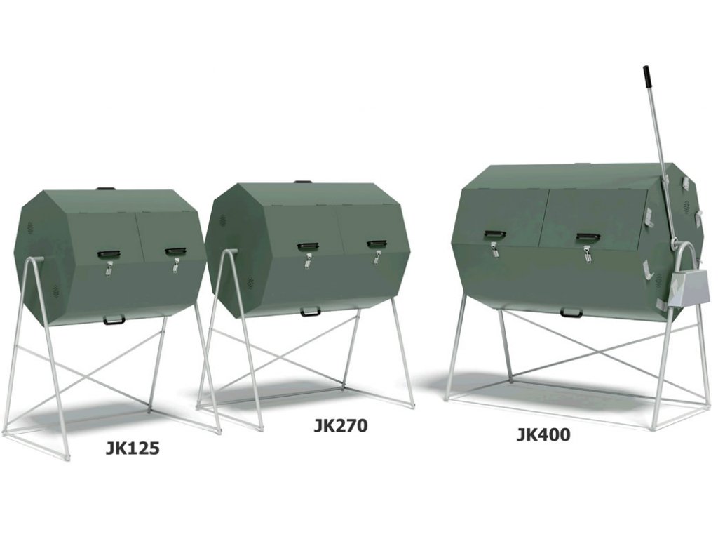 - kompostér JK270 je navržen tak, aby otáčení bylo snadné a jednoduché - jednoduše se kompostérem ručně zatočí po každém vložení biomateriálu